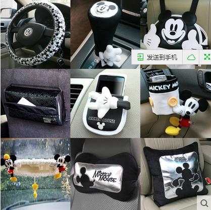 > 米奇 汽车内饰装饰用品夏季车内饰品套装手刹排挡套安全带套车饰